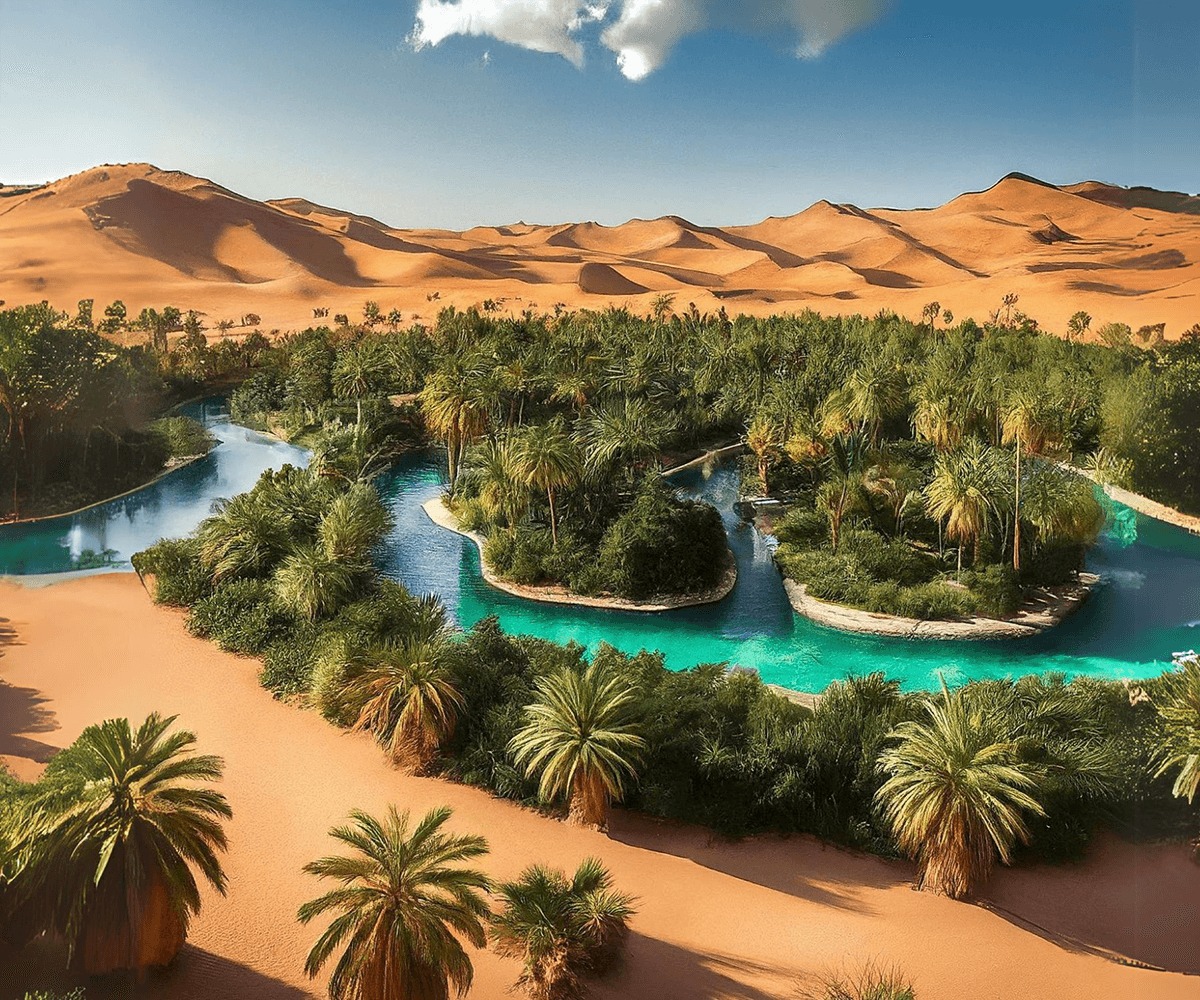 In the heart of the Arabian desert, where sands and barren terrains dominate, the idea of the Arabian Oasis Company was born. A group of scientists and engineers, united by their passion for the environment and its sustainability, decided to transform this desert using advanced technology and innovation.